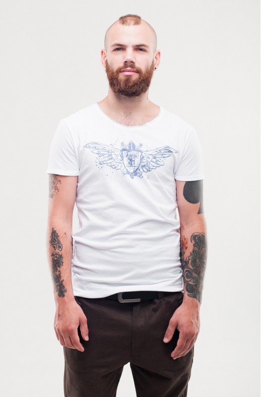 Как у Вас еще нет крыльев? Тогда эта футболка просто обязана стать вашей! Никаких воротников, манжет на рукавах - все для свободы движений. Только яркий цвет и забавный принт. Носите эту футболку с синими, бежевыми и коричневыми джинсами. Пробуйте с шортами и рубашкой сверху. Импровизируйте с аксессуарами. На работу, учебу и дискотеку. Эта вещь действительно окрыляет! А для Больших модников, у нас есть большие размеры!
